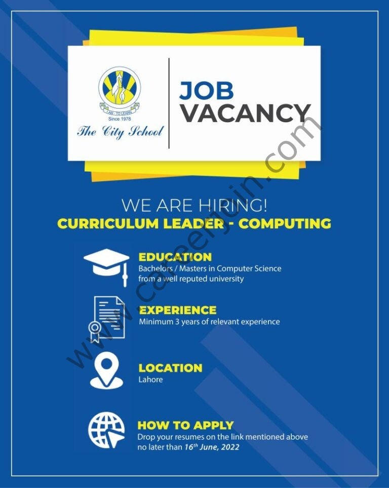 TheCitySchool is looking to fill out the position of Curriculum Leader- Computing at the Central Region Office, Lahore.